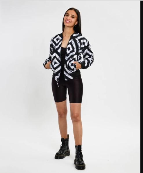 Bomber jacket made from 100% cotton. Bomber jacket with 3 external pockets with the geometric 'Miraba' print. Handmade with love in Kenya!